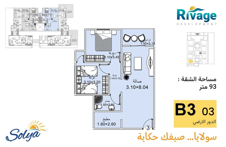 •شاليهات غرفتين + ريسبشن: تصل إلى 104 م² للعائلات الكبيره
