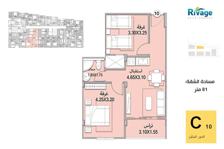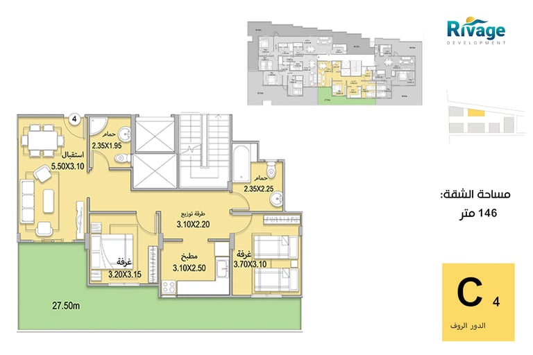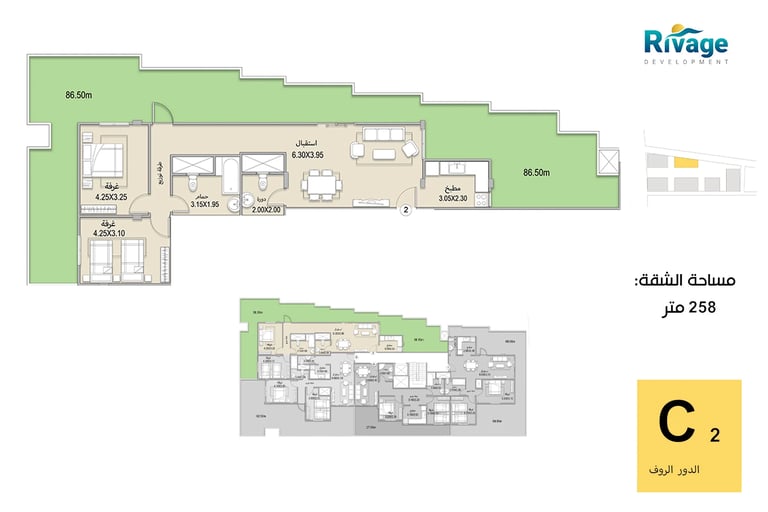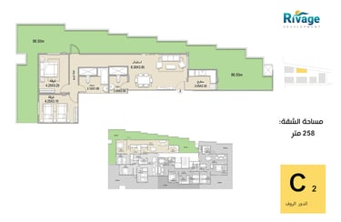 •شاليهات غرفتين + ريسبشن: تصل إلى 255 م² للعائلات الكبيرة