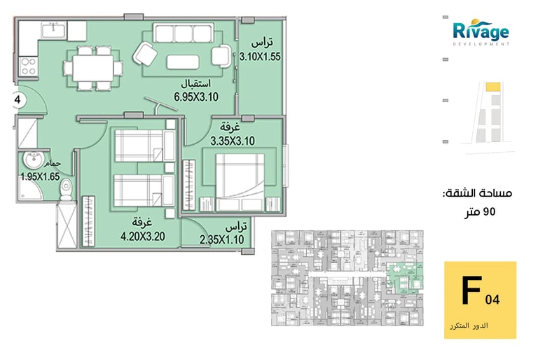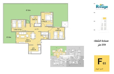 •شاليهات غرفتين + ريسبشن: تصل إلى 255 م² للعائلات الكبيرة